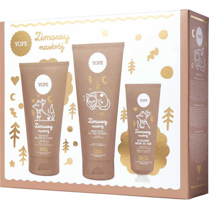 Yope Zestaw Zimowy Nastrój Balsam do ciała 150 ml, Żel pod prysznic 200 ml, Krem do rąk 50 ml