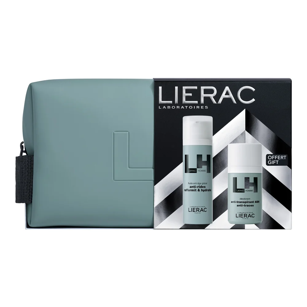 Zestaw Lierac Homme, emulsja Anti-aging, 50 ml + dezodorant, 50 ml + kosmetyczka