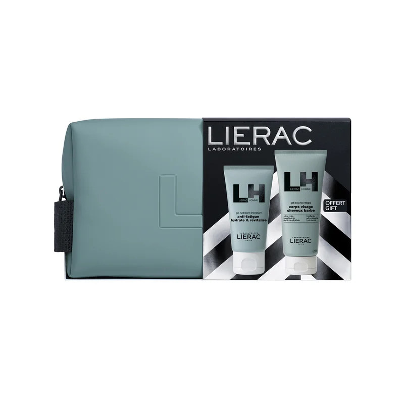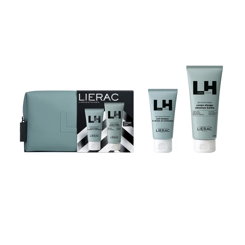 Zestaw Lierac Homme to produkt kosmetyczny, który zawiera żel nawilżający do twarzy oraz żel pod prysznic. Żel nawilżający do twarzy zapewnia skórze nawilżenie i odświeżenie. Żel pod prysznic ma na celu oczyszczenie skóry, pozostawiając ją świeżą i przyjemną w dotyku. W zestawie znajduje się również kosmetyczka, która umożliwia wygodne przechowywanie produktów.Składniki/Ingredients