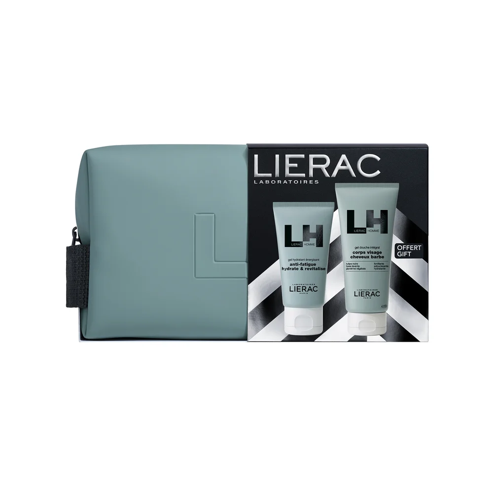 Zestaw Lierac Homme, żel nawilżający do twarzy, 50 ml + żel pod prysznic, 200 ml + kosmetyczka