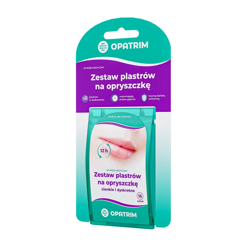 Opatrim Zestaw plastrów na opryszczkę to wyrób medyczny, który służy do ochrony ran opryszczki zwykłej wokół warg, nosa lub podbródka. Plaster składa się z dwóch warstw: hydrożelowej, która przyspiesza gojenie i zmniejsza ból oraz folii poliuretanowej odpornej na bakterie.