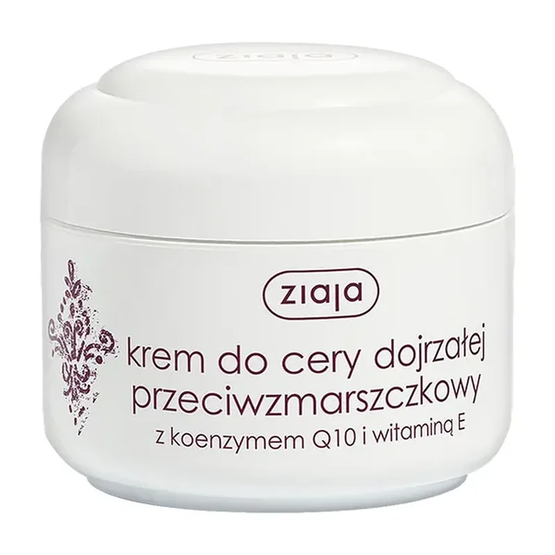 Ziaja, krem do cery dojrzałej przeciwzmarszczkowy z koenzymem Q10 i witaminą E to produkt kosmetyczny do pielęgnacji skóry twarzy. Produkt w swoim składzie zawiera 91% składników pochodzenia naturalnego.