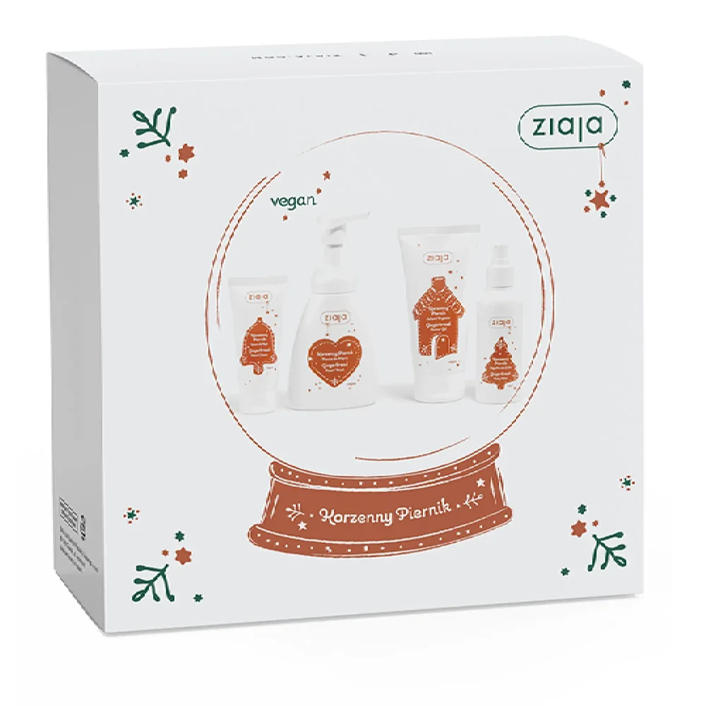 Ziaja, zestaw korzenny piernik to produkt kosmetyczny, który zawiera składniki o korzennym zapachu nawiązującym do aromatów świątecznego piernika. Zestaw przeznaczony jest do pielęgnacji skóry, nawilżenia oraz poprawy jej kondycji. Zestaw zawiera żel pod prysznic, piankę do mycia, krem do rąk oraz mgiełkę do ciała.