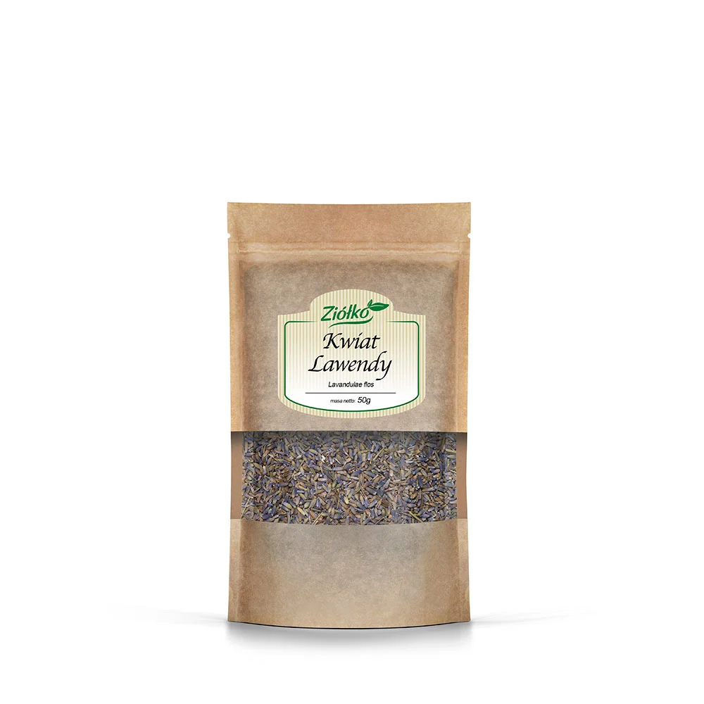 Ziółko Lawenda, 50 g to środek spożywczy. Produkt zawiera suszone kwiaty lawendy, które mogą być pomocne podczas trudności z zasypianiem, wpływając na lepszą jakość snu.
