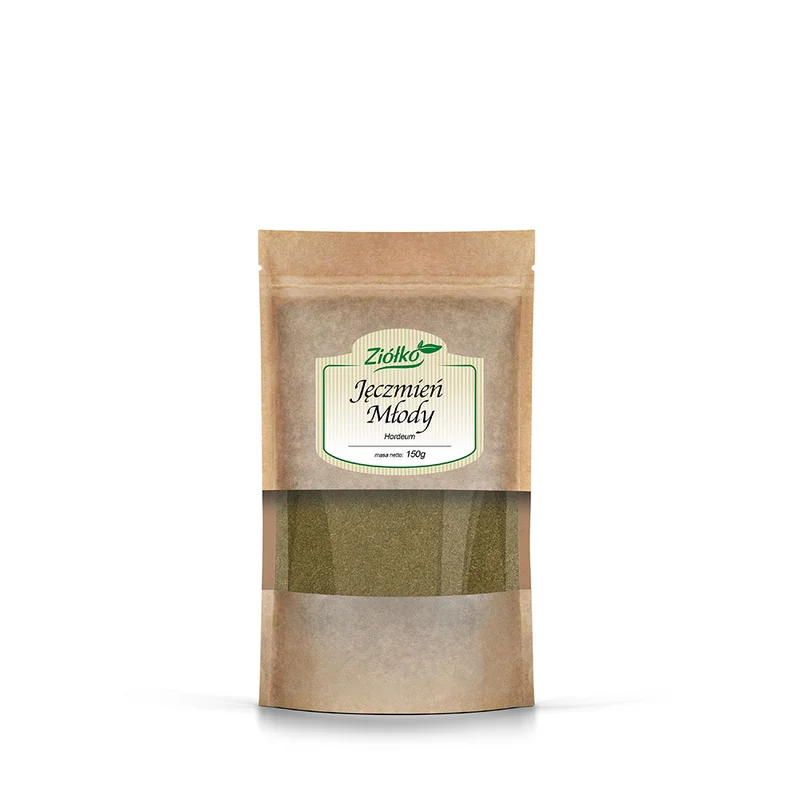 Ziółko Jęczmień młody mielony to środek spożywczy, który powstaje z młodych liści jęczmienia. Produkt jest źródłem błonnika oraz zawiera witaminy i minerały. Może być stosowany w różnych potrawach, smoothie oraz jako dodatek do napojów.