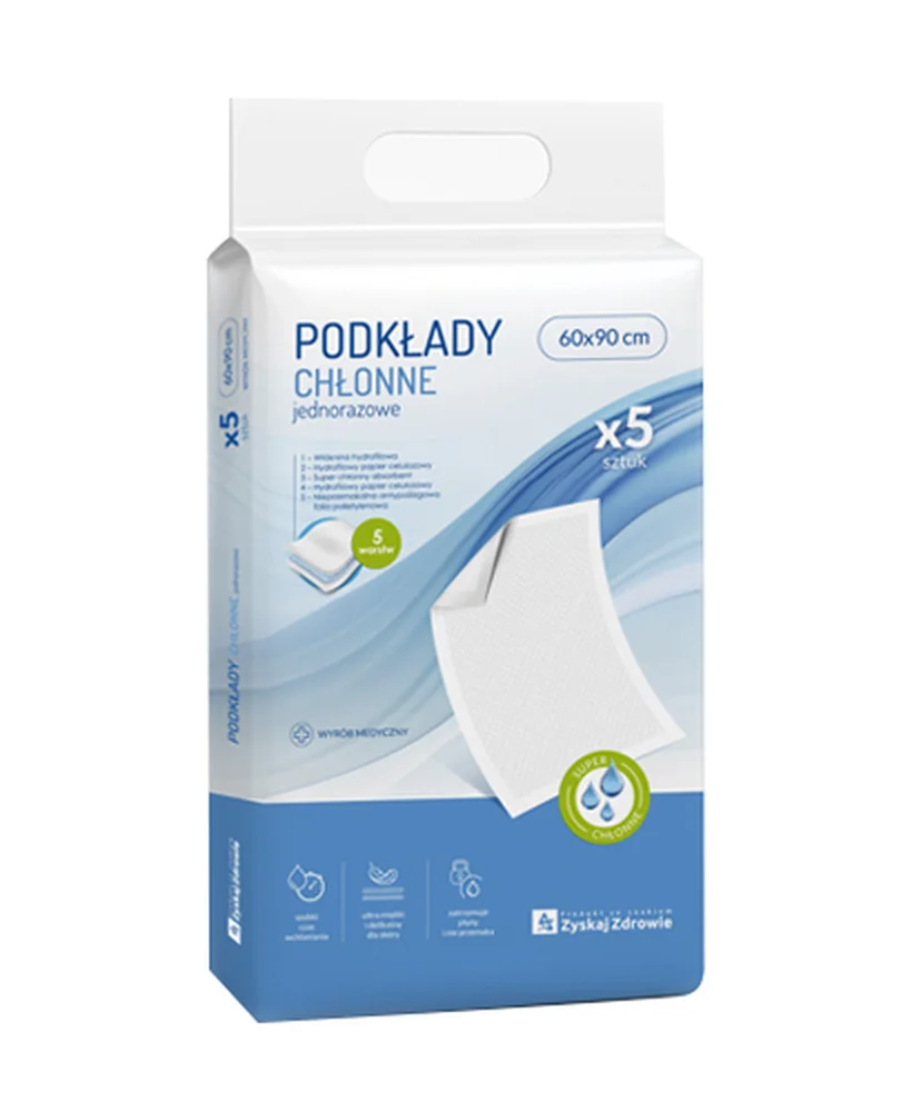 Zyskaj Zdrowie, Podkłady chłonne jednorazowe to wyrób medyczny przeznaczony do stosowania w sytuacjach wymagających ochrony przed wilgocią i zabrudzeniem powierzchni.